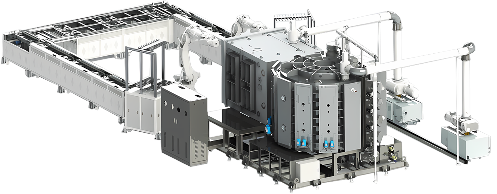SOM 系列设备是一台带回传功能的自动化闭环生产线镀膜设备,并配备可分隔的进出料腔,