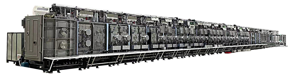 大平面光学镀膜生产线适用于各类大平面产品。产线可实现最多14层精密光学膜叠加,膜层均匀、重复性高,确保产品品质稳定,满足高端光学应用的严格要求。产线可量产2M*3M超大尺寸光学镀膜玻璃,最高产量可达50㎡/h,支持大规模生产,助力企业降低成本,实现绿色高效生产。