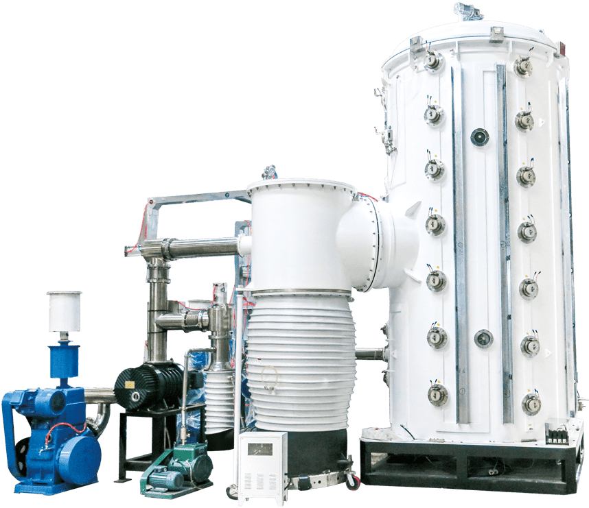 该设备采用了多弧离子镀膜技术,设备操作简单,抽速快,效率高,工艺重复性好;配置双工位可移动式工件架,上下工件操作方便,免去待机时间,生产效率高;膜层具有均匀性好、抗腐蚀性强、耐磨损、颜色耐久性好等优点。