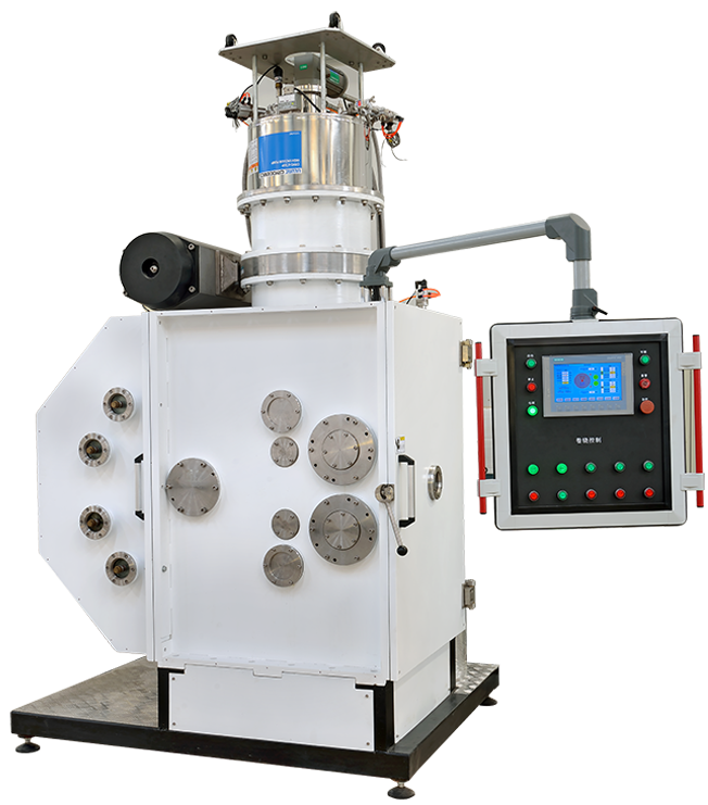 本系列设备是利用磁控靶将镀膜材料转化为纳米尺度的粒子,沉积在基片表面形成薄膜。成卷基膜放在真空内,通过电驱动卷绕机构一头收一头放,持续通过靶区,接收靶料粒子,形成致密的膜层。